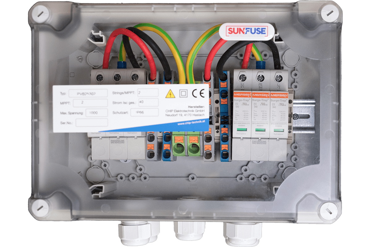 Die PushIN PRO Serie von Sunfuse bietet erstklassige Generatoranschlusskästen speziell für Photovoltaikanlagen. Mit Schutzklasse II, IP66-Schutzart und integriertem Überspannungsschutz (Typ T1+2 oder T2) gewährleistet sie höchste Sicherheit und Zuverlässigkeit. Dank Push-IN-Klemmen und mehrfacher Kabelverschraubungen ist die Installation schnell und unkompliziert. Die Serie unterstützt bis zu zwei MPP-Tracker und ermöglicht parallele Verschaltung, wodurch sie für verschiedene PV-Anlagengrößen und Anforderungen geeignet ist. Das robuste Gehäuse aus Polycarbonat bietet Schutz unter widrigen Bedingungen und sorgt für eine lange Lebensdauer. Die PushIN PRO Serie ist die perfekte Lösung für professionelle Photovoltaik-Installationen, die auf maximale Effizienz und Langlebigkeit setzen.